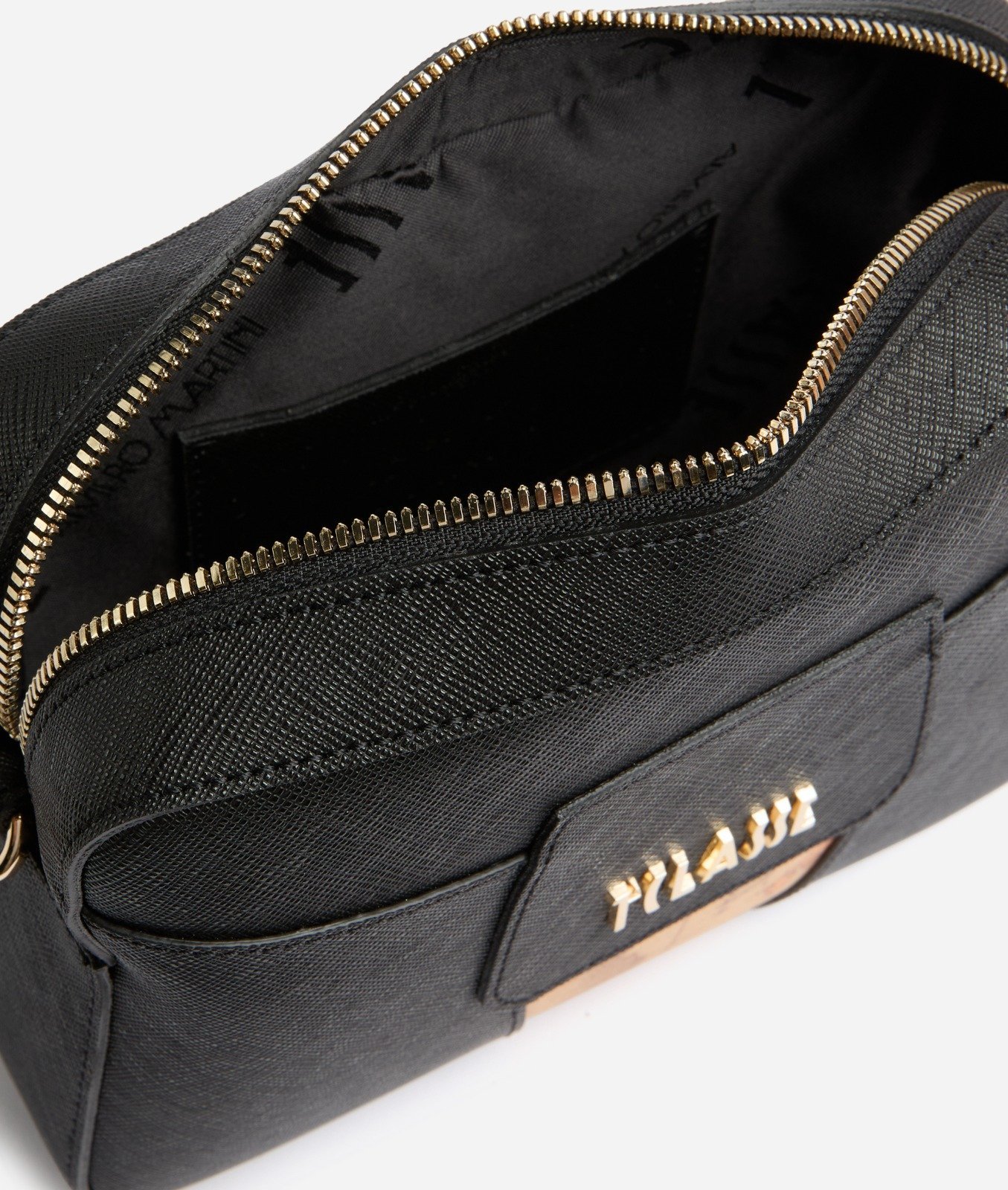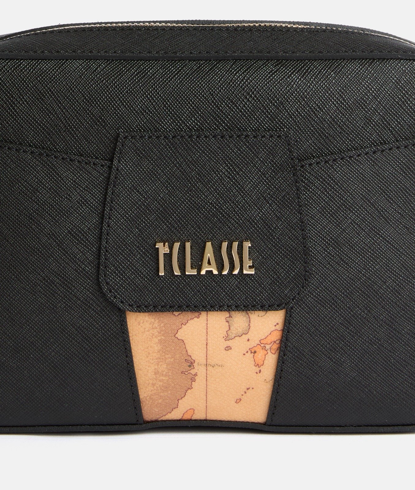 Çantë crossbody kompakte në ngjyrë te zeze me detaj hartë Geo Classic dhe logo 1 CLASSE. Praktike dhe stil elegante për përdorim ditor.